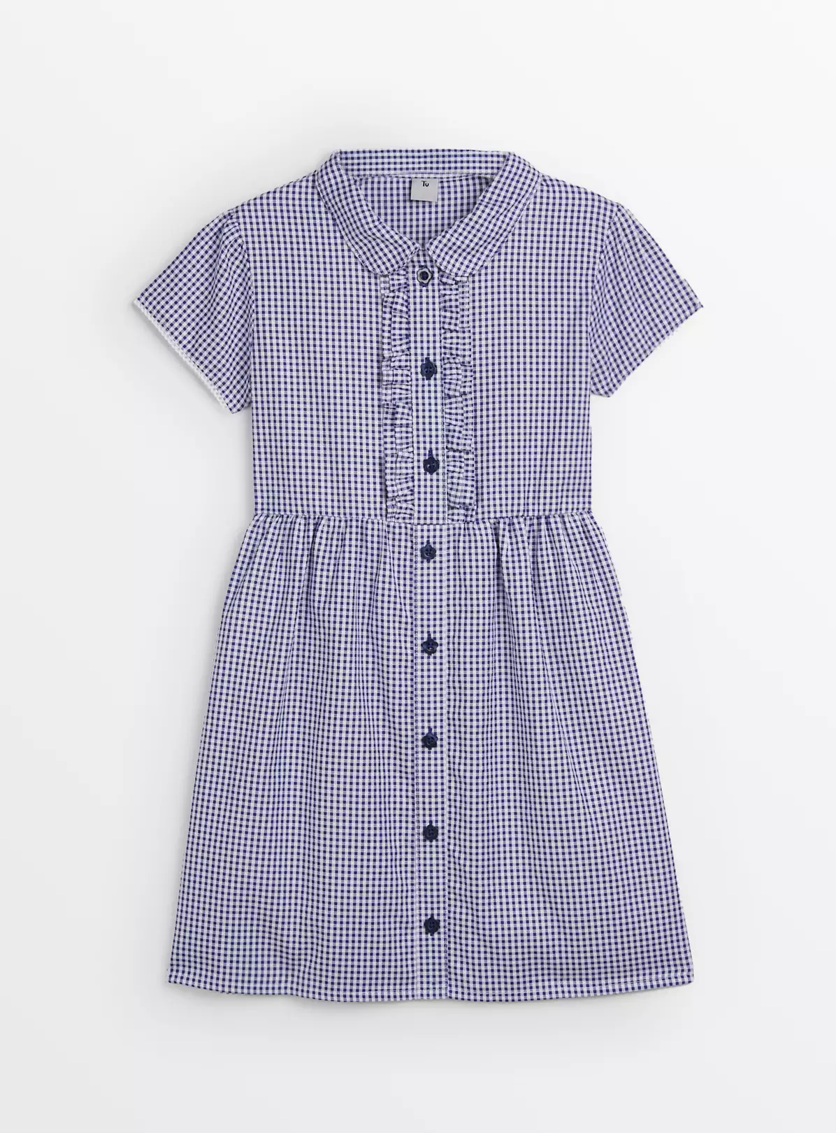 Update their summer school essentials with our cap sleeve gingham dress with a pretty bow to the back and frill detail. It has value fastenings, a classic Peter Pan collar and is made with a fabric which repels water-based stains, and is easy to iron. In a more roomy generous fit. See our full range of school uniform for a variety of clothing to suit their everyday school activity. Available in a variety of colours.