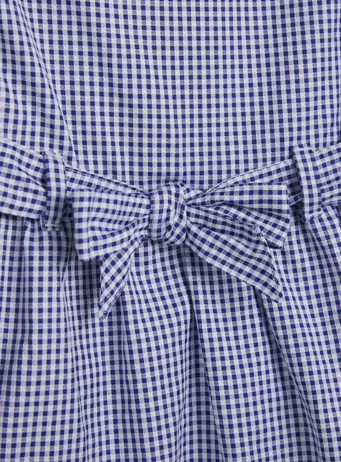 Navy Gingham Back Bow Generous Fit School Dress 3 Years