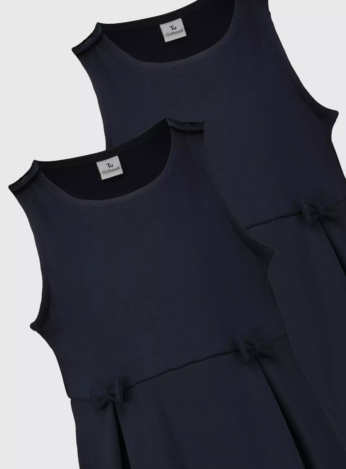 Refresh their daily schoolwear with this pack of four smart pinafore dresses. In classic navy, they have two front pleats and are finished with value fastening on the shoulders and cute bows on the waistband.
