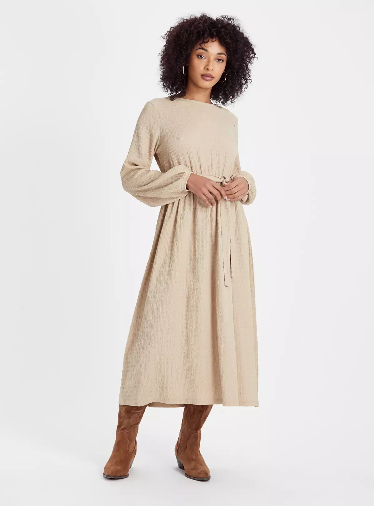 Be the first to review “Neutral Crinkle Tie Waist Midi Dress 12” Cancel reply
