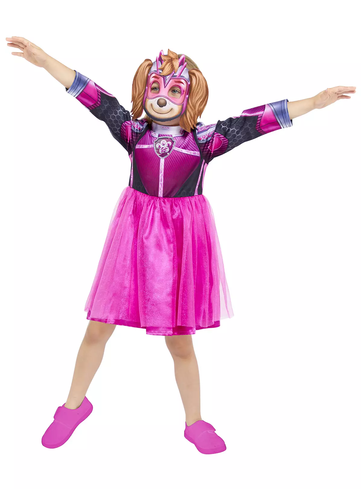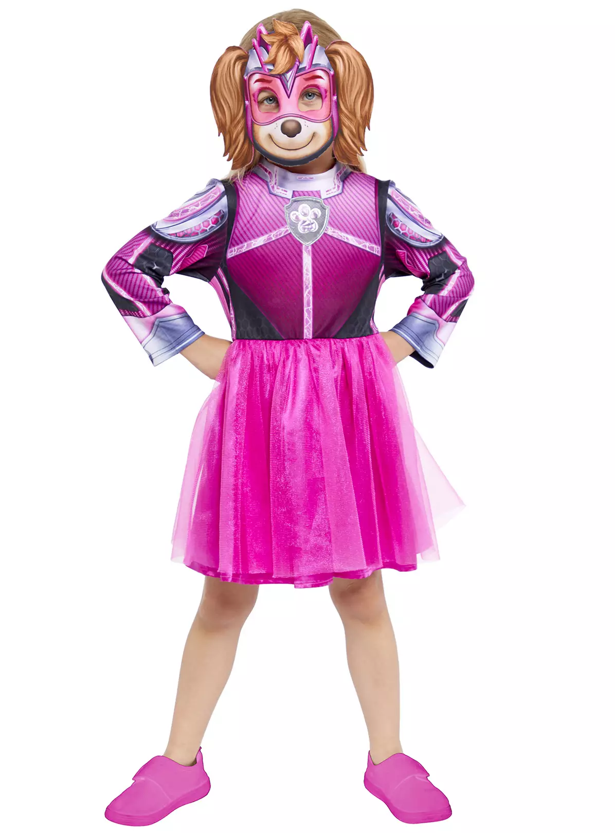 Perfect for fancy dress parties and playing make believe, fans of Paw Patrol will love dressing up as Skye with this two piece costume. The outfit consists of a pink dress and face mask, and one touch fastenings at the back for easy dressing.