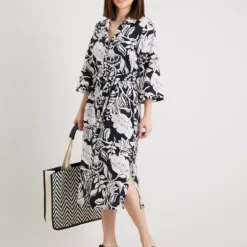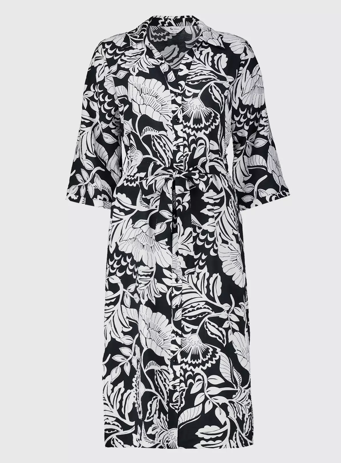 Our mono floral print shirt dress is just what your wardrobe needs this spring/summer. Made from a soft viscose blend, it has flattering half sleeves and a tie-belt to cynch you in a the waist. Perfect for your holiday suitcase, team with sandals and a floppy hat. From our Petite Collection.