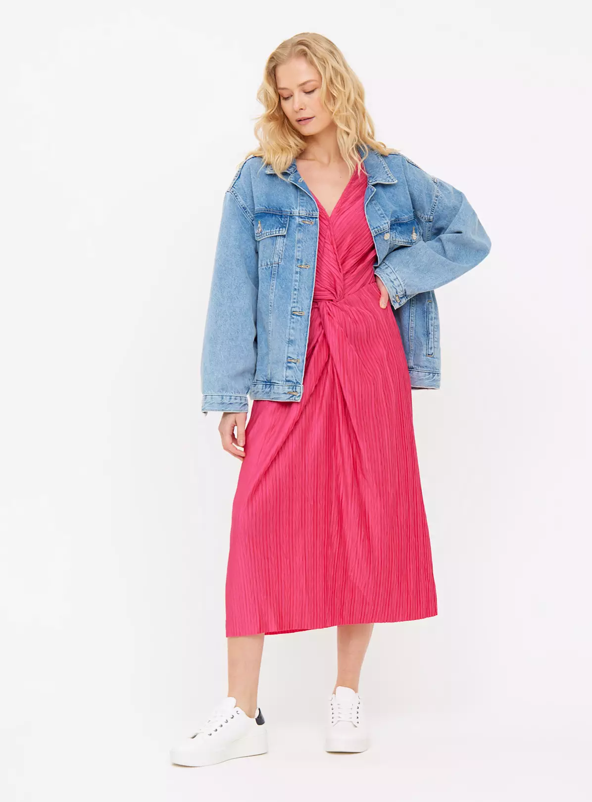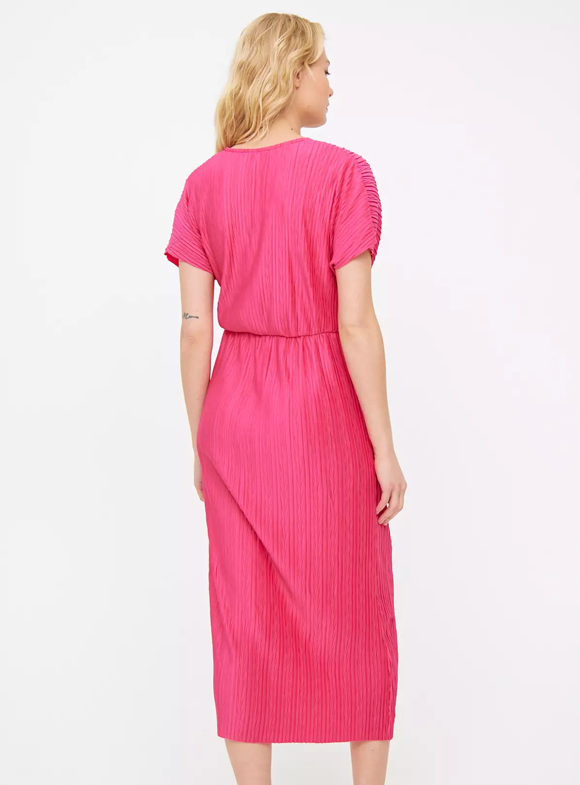 Go for a glam look this spring with our gorgeous pink plisse dress. With a fabulous twist front detail and short sleeves, it looks great with heels for a night out! Available in other colours.