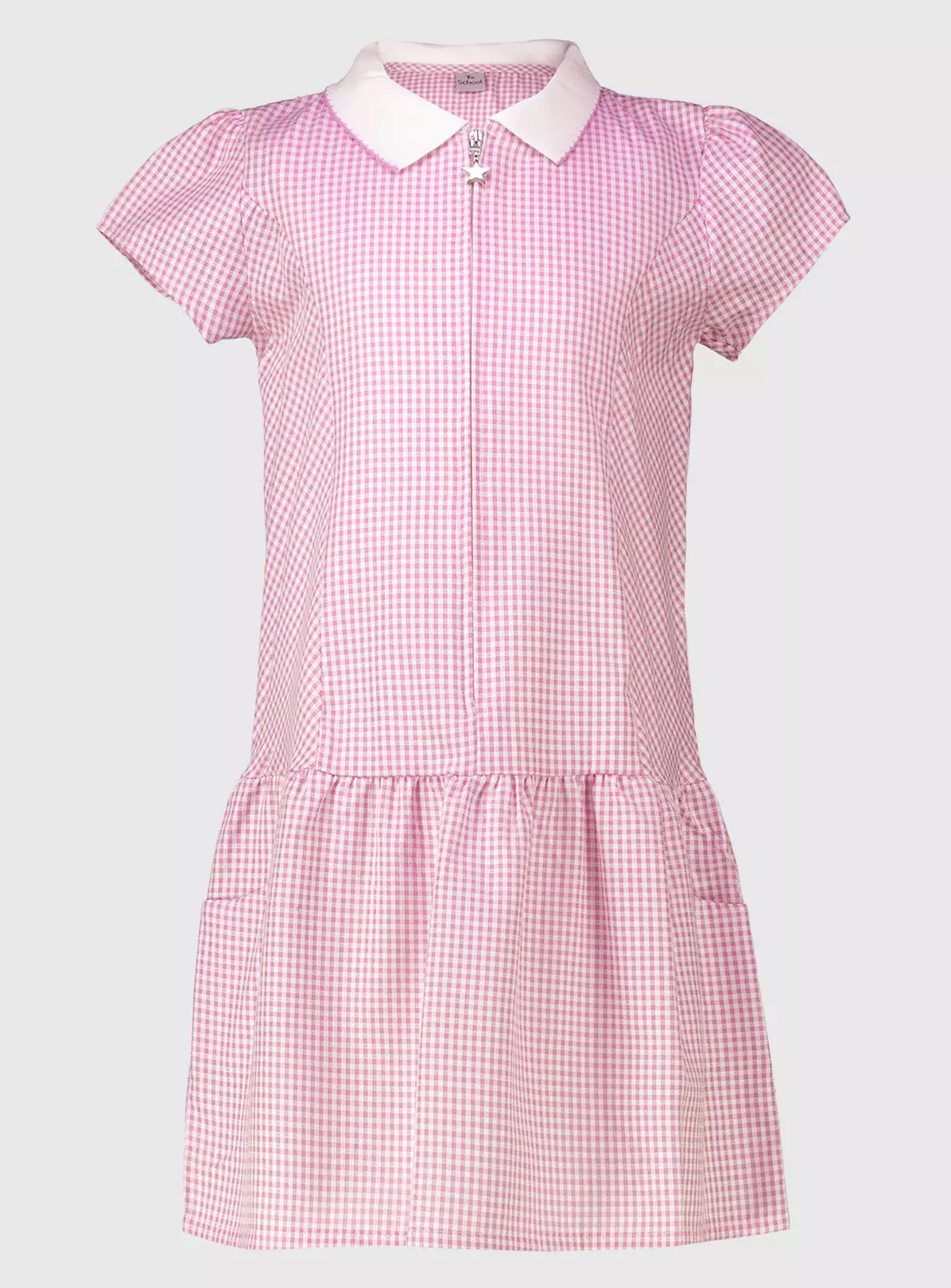 Get ahead for the summer term with our pink, cap sleeve, sporty gingham dress with its zip front, drop waist and cute, low slung pockets. Perfectly practical, it’s made from a fabric which repels water-based stains, and is easy to iron. See our full range of school uniform, especially designed to kit them out from head to toe. Available in a variety of colours.