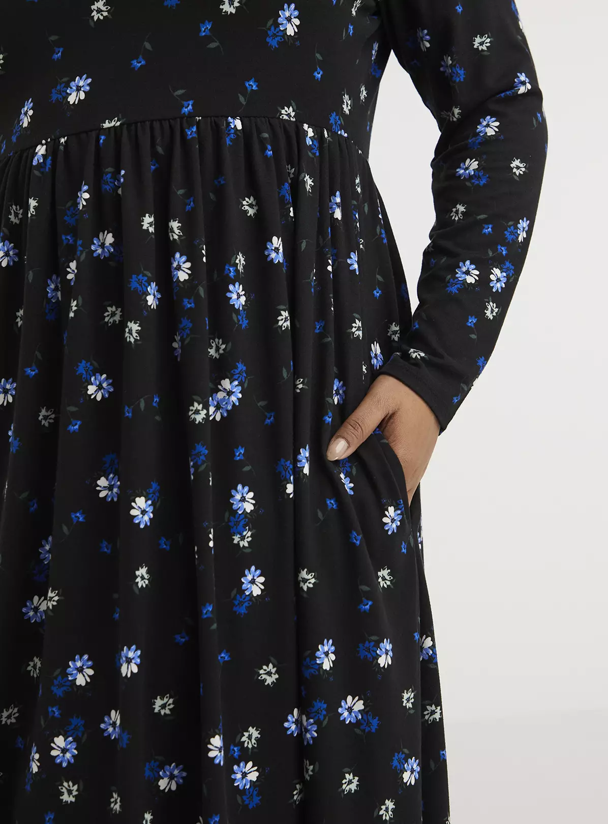 Our classic supersoft midi dress is back this season! This time it comes in a ditsy floral and mono spot print, featuring pockets. Chuck on in the daytime with some comfy trainers and your everyday tote bag.