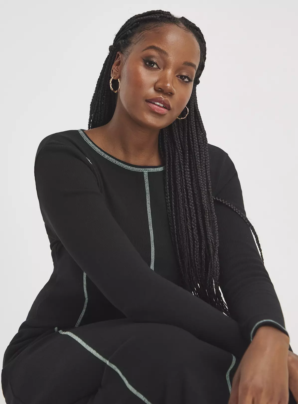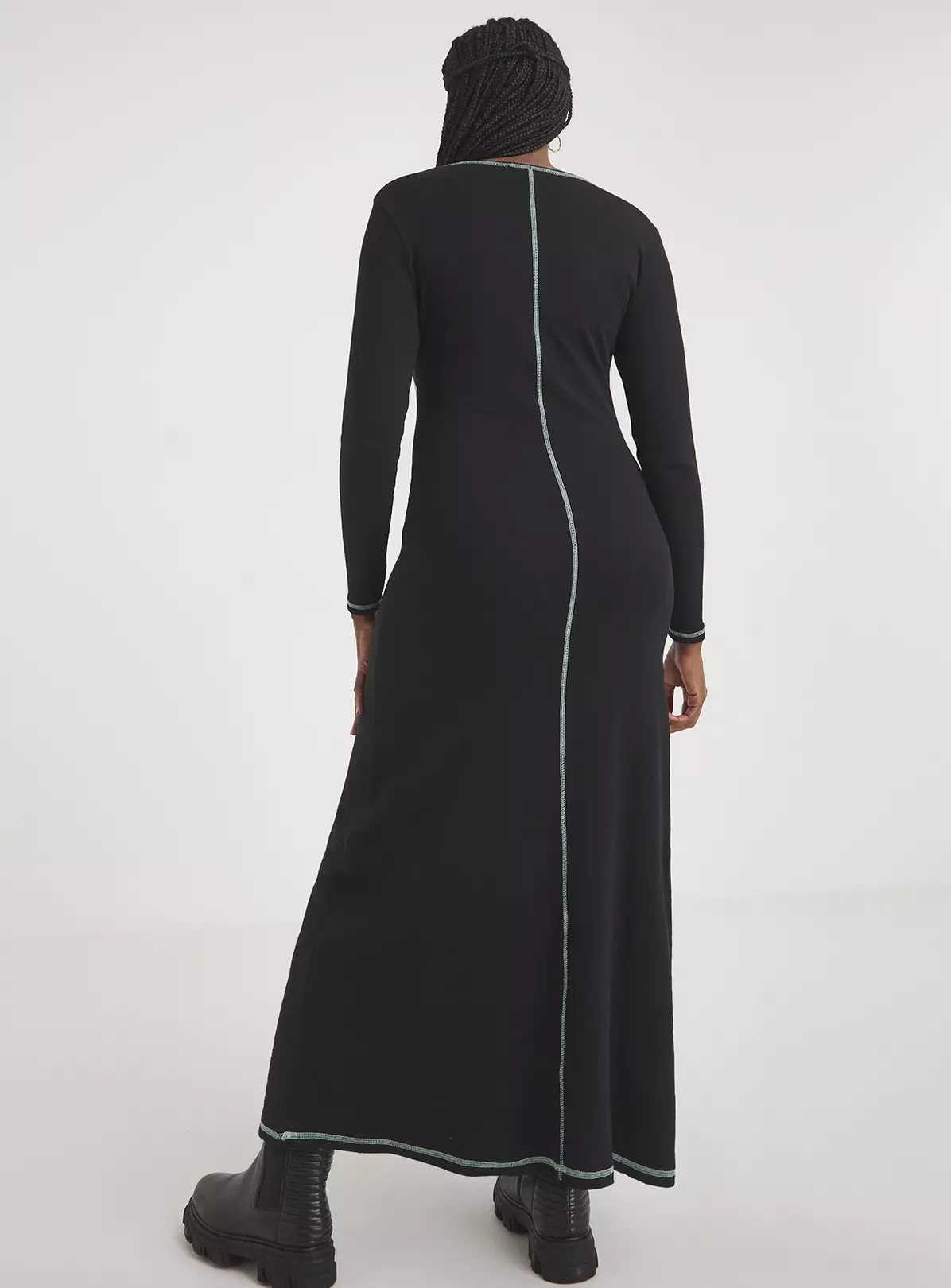 Feel fabulous in this on trend midaxi dress! Featuring long sleeves, comfortable jersey fabric and stunning exposed green seam detail. Simply pair with boots or trainers for a cool daytime look.
