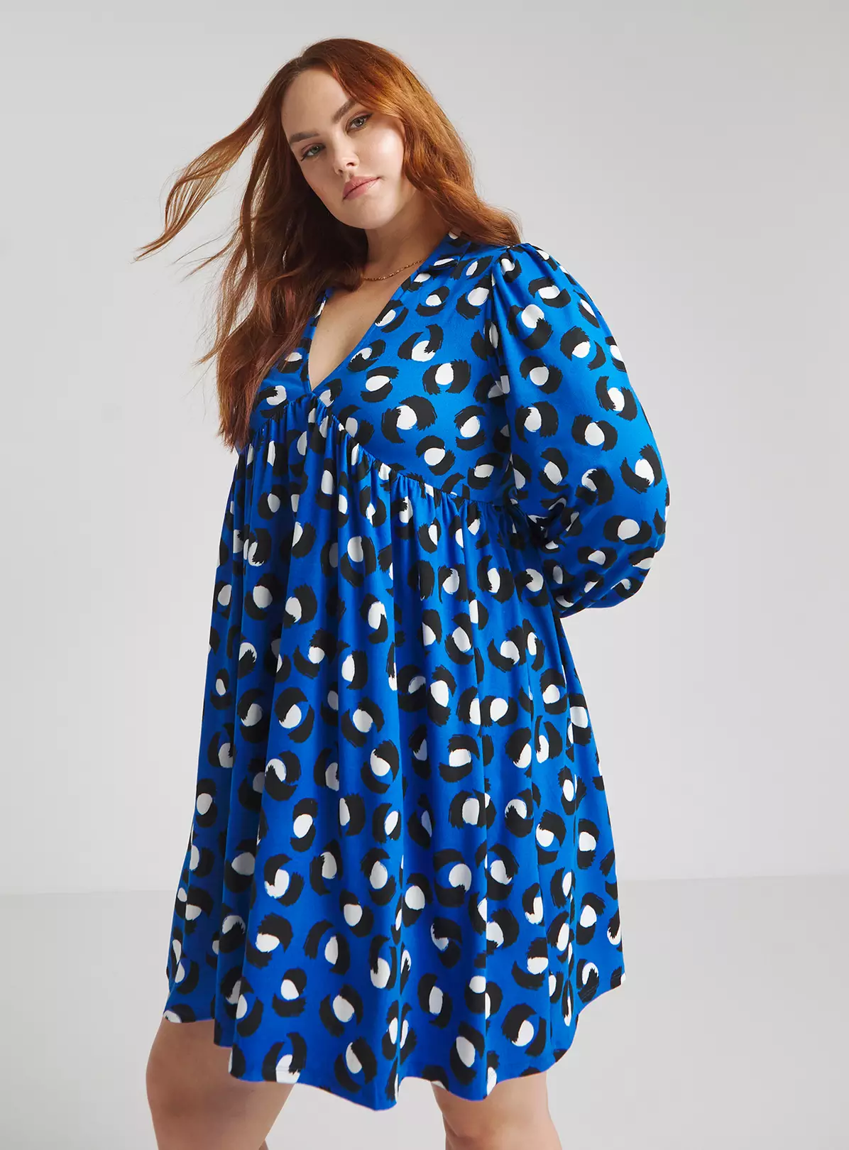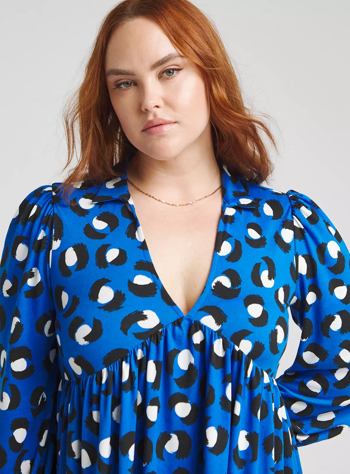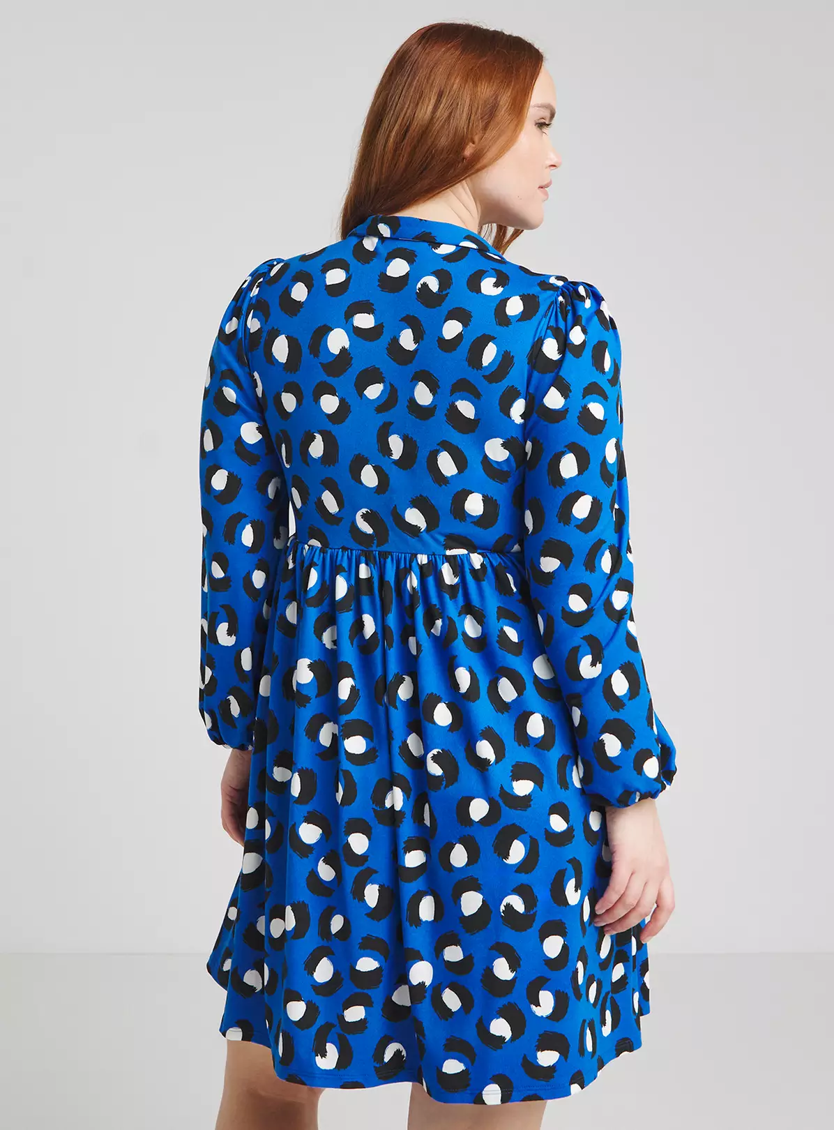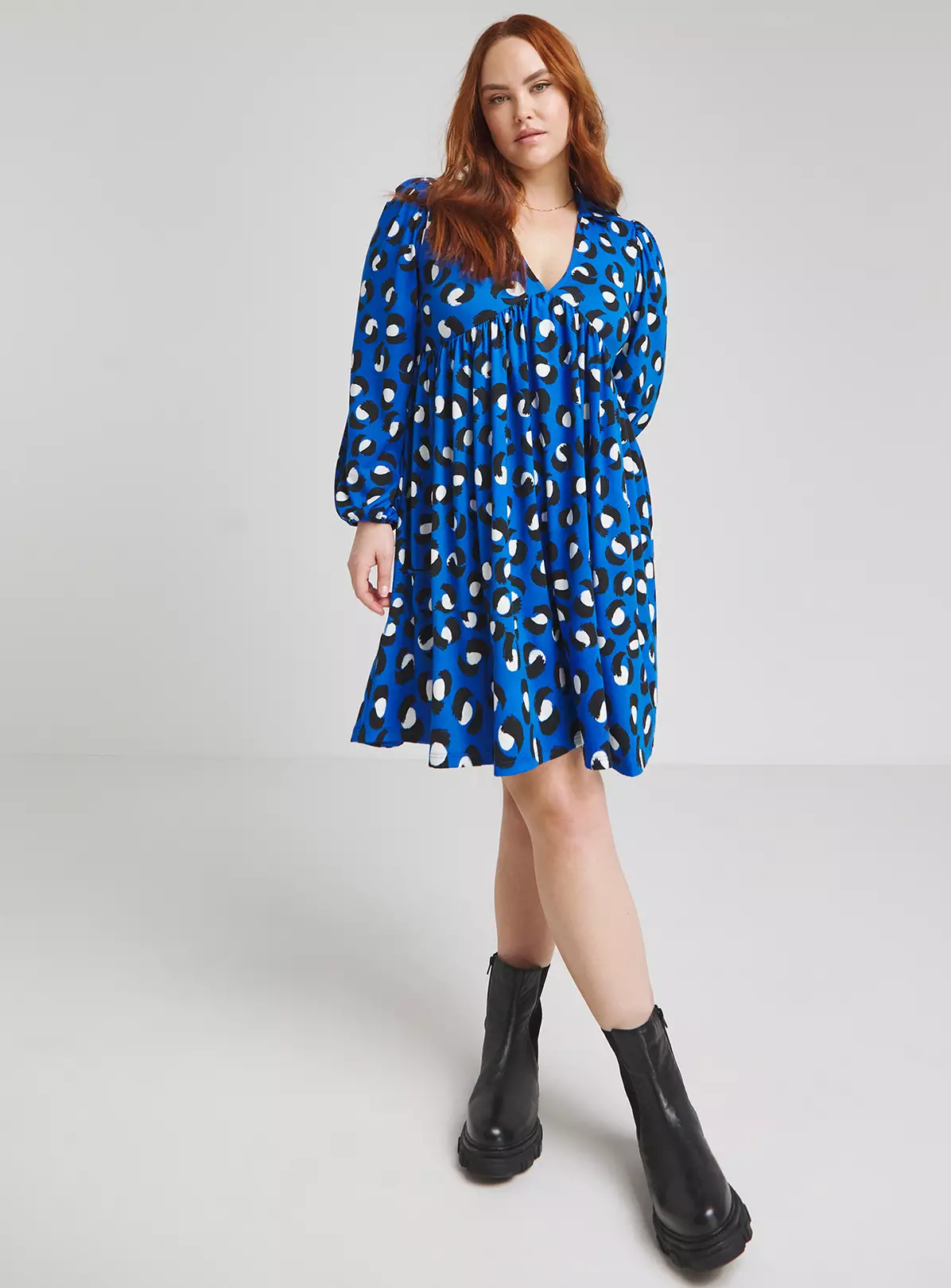 SIMPLY BE Supersoft Smock Dress In Blue Animal Print 26