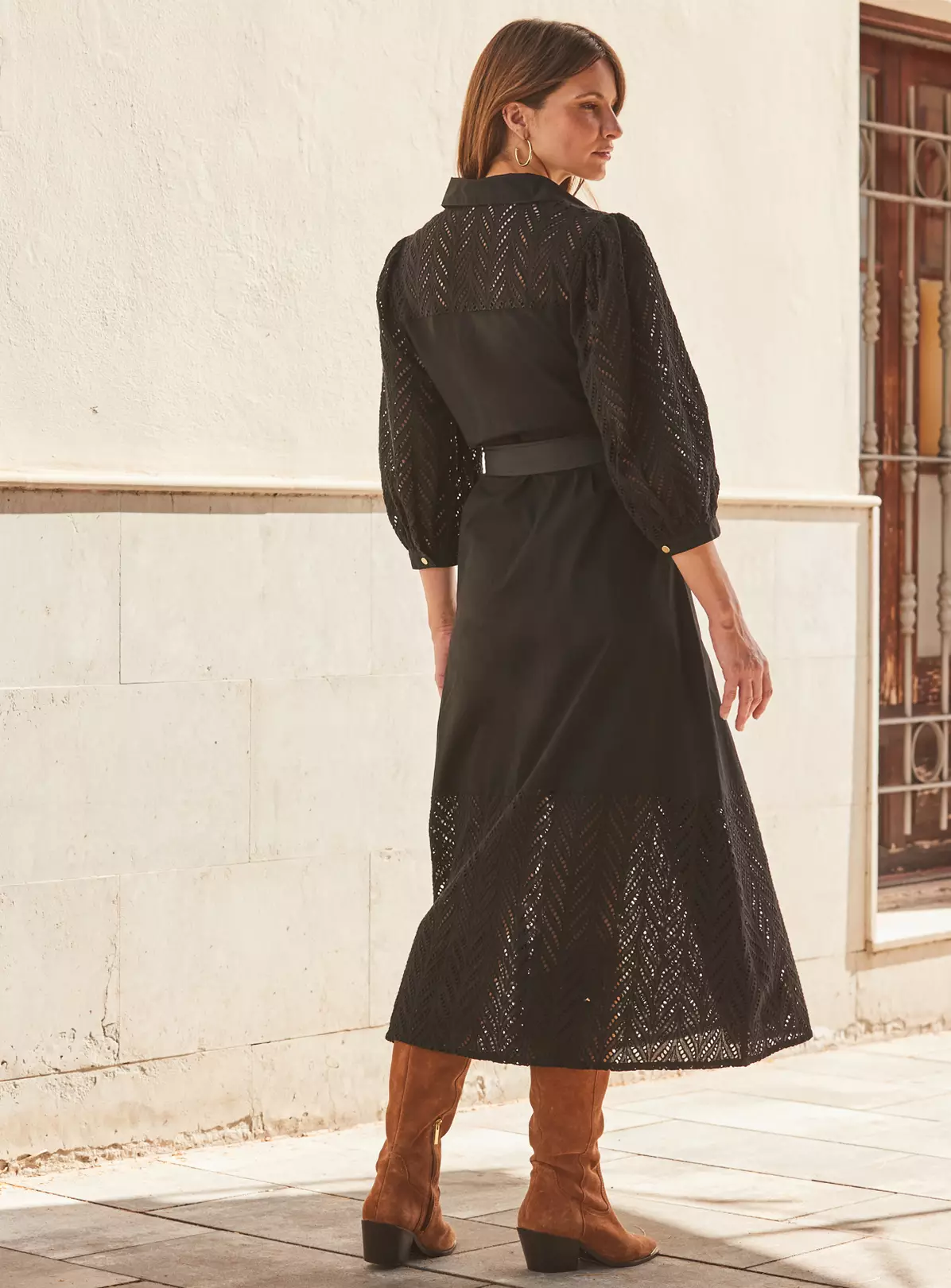 SOSANDAR Black Broderie Detail Midi Shirt Dress 16