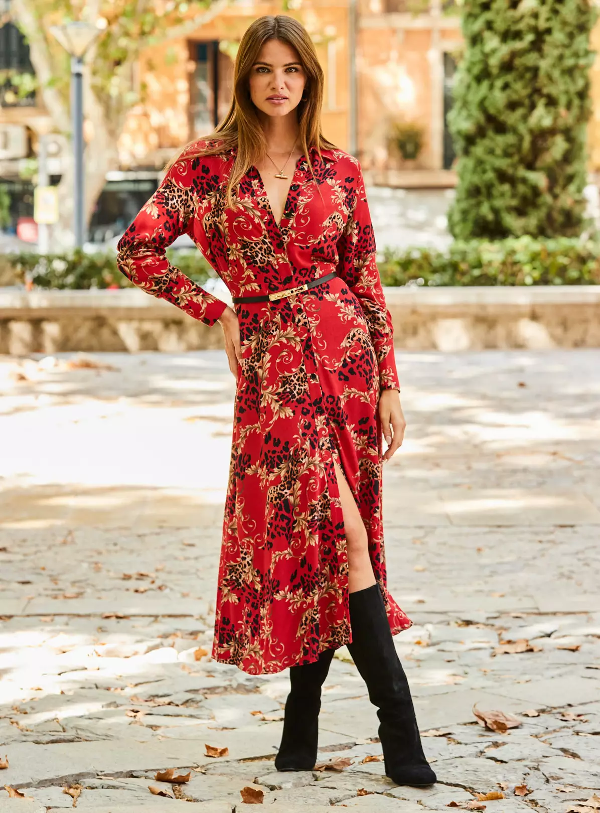 If in doubt printed dress, florals you won’t find anywhere else, timeless shirt dress style – wear it for work and play, waist-accentuating matching belt tie, dress it down with flats or trainers, style with knee-highs for an effortlessly chic look.