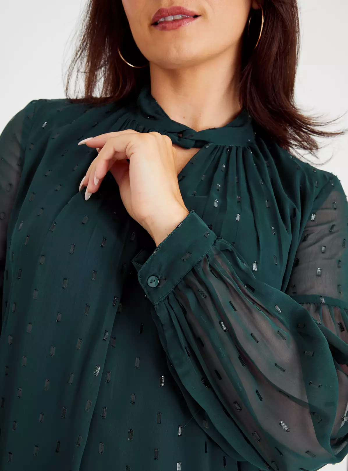Fresh from our party wear edit, this teal mini dress is perfect for your festive celebrations! It’s elevated by a unique twist neck design and sparkle embellishments. Finish off your look with boots and a clutch.