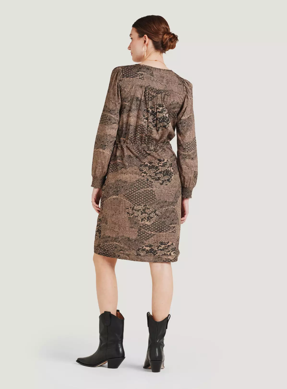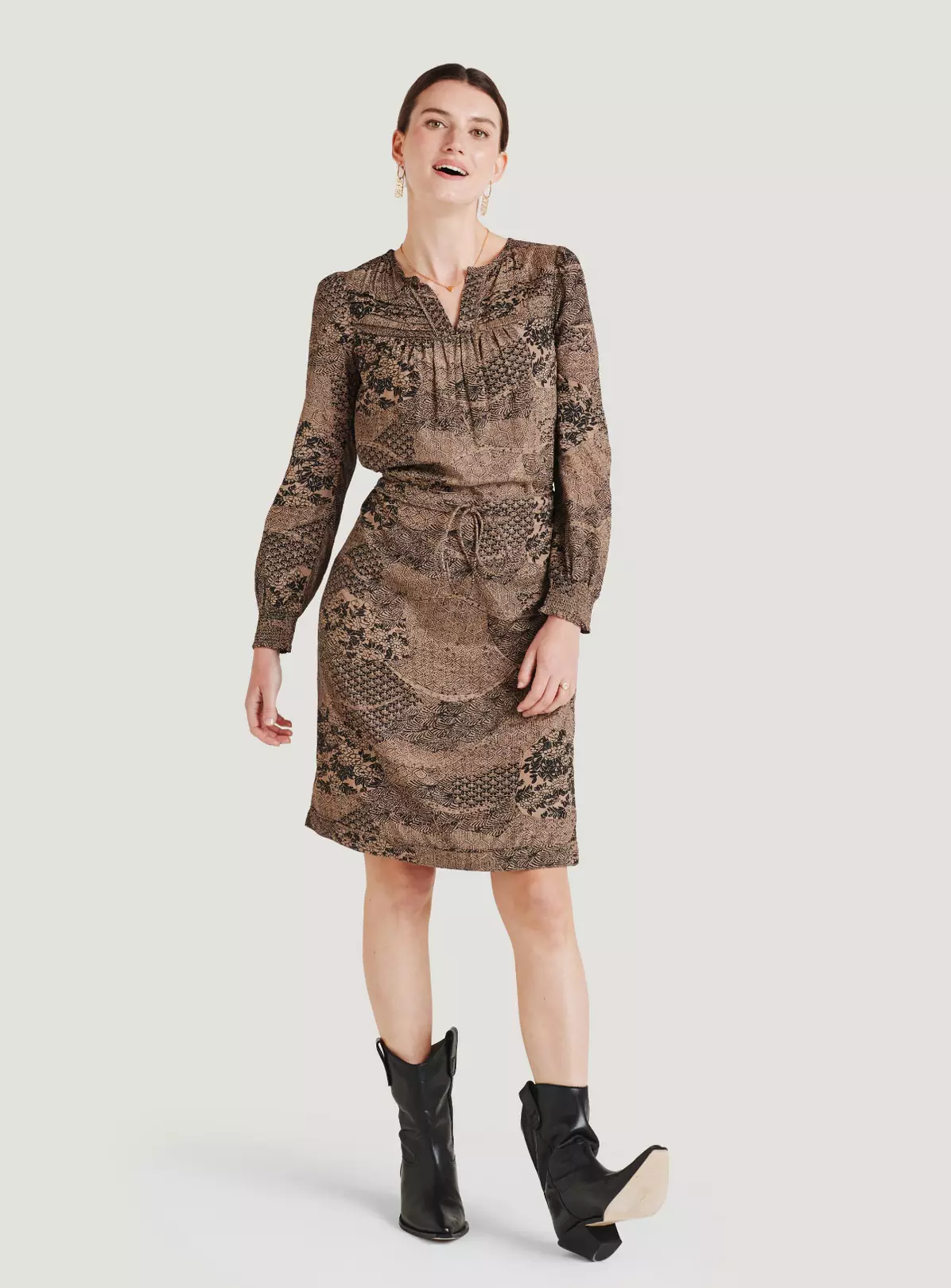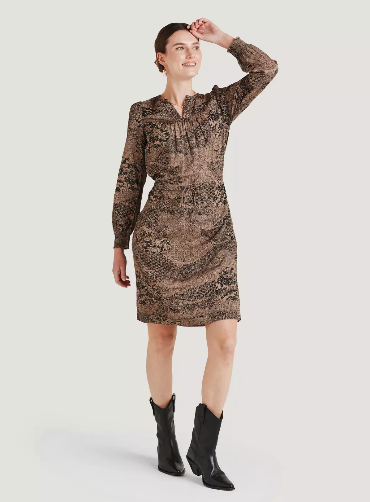 We love the feel and fall of this light, soft crepe dress. Add to that a standout pattern and easy-wear shape and you may have found your new heritage piece.
