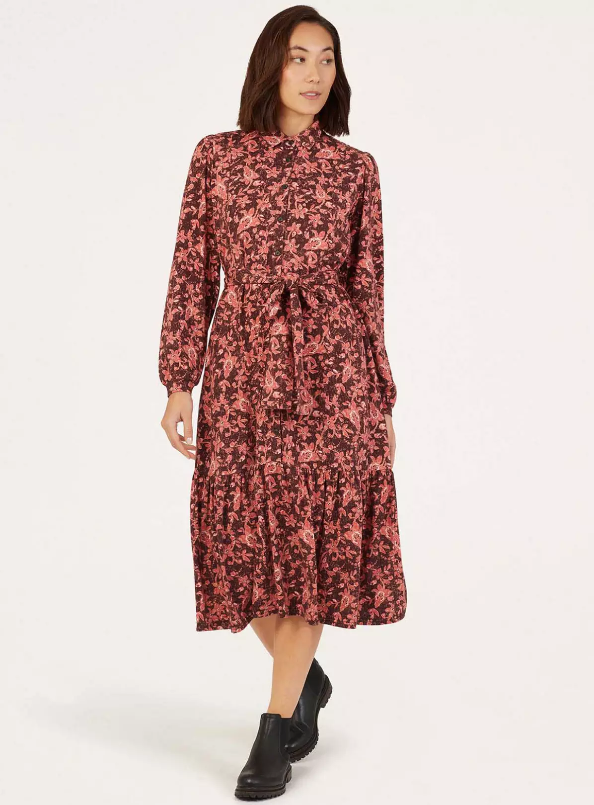 Its eye-catching pattern made with the season in mind and relaxed, elegant silhouette make this a dress to take you wherever you wander in one simple step.