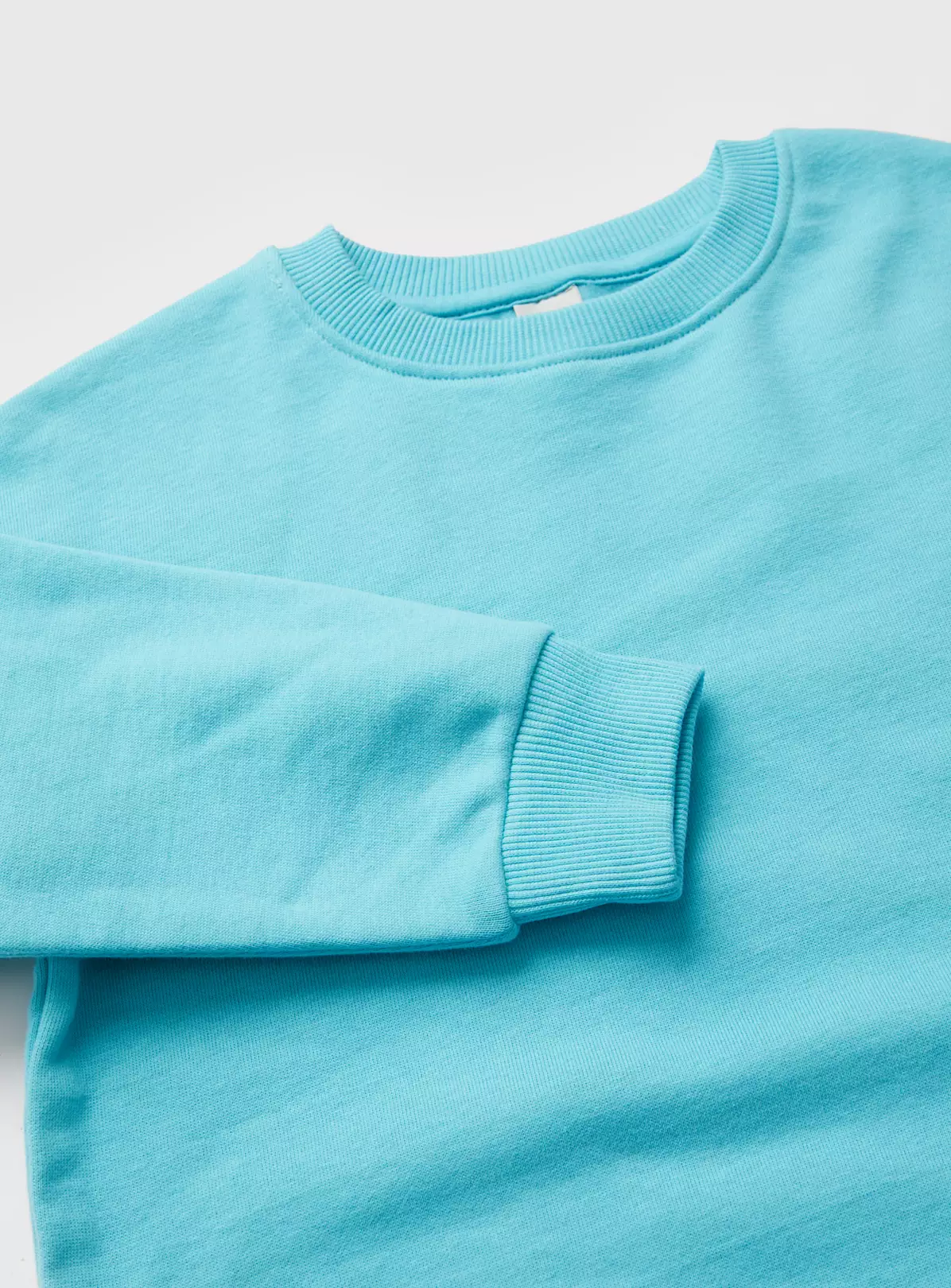 They’ll be cute and comfy in our sweatshirt dress. In a cool turquoise shade, it features a crew neckline and has long sleeves. Perfect for wearing with tights and boots this season!