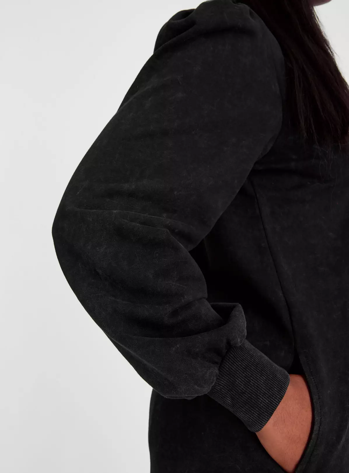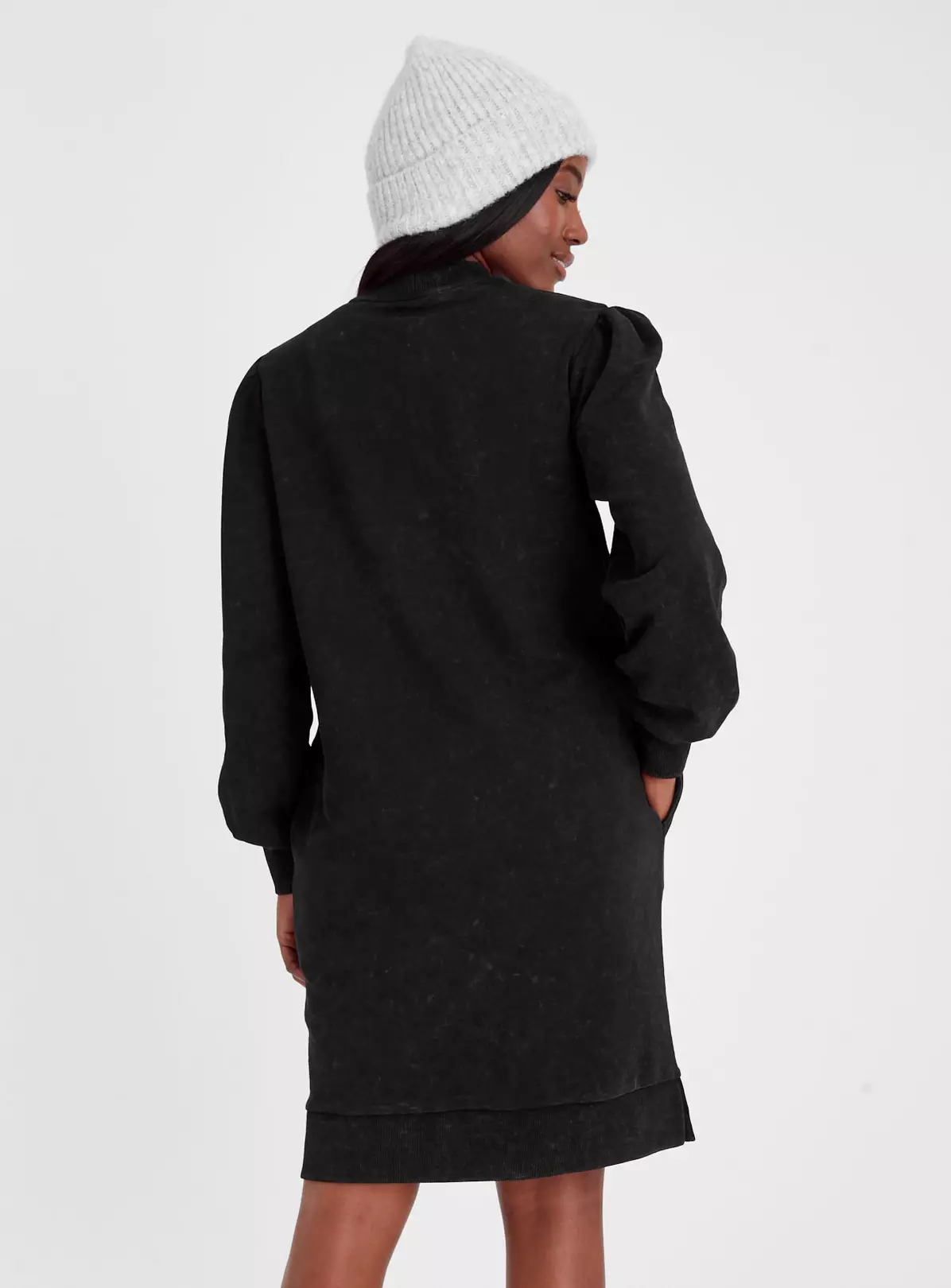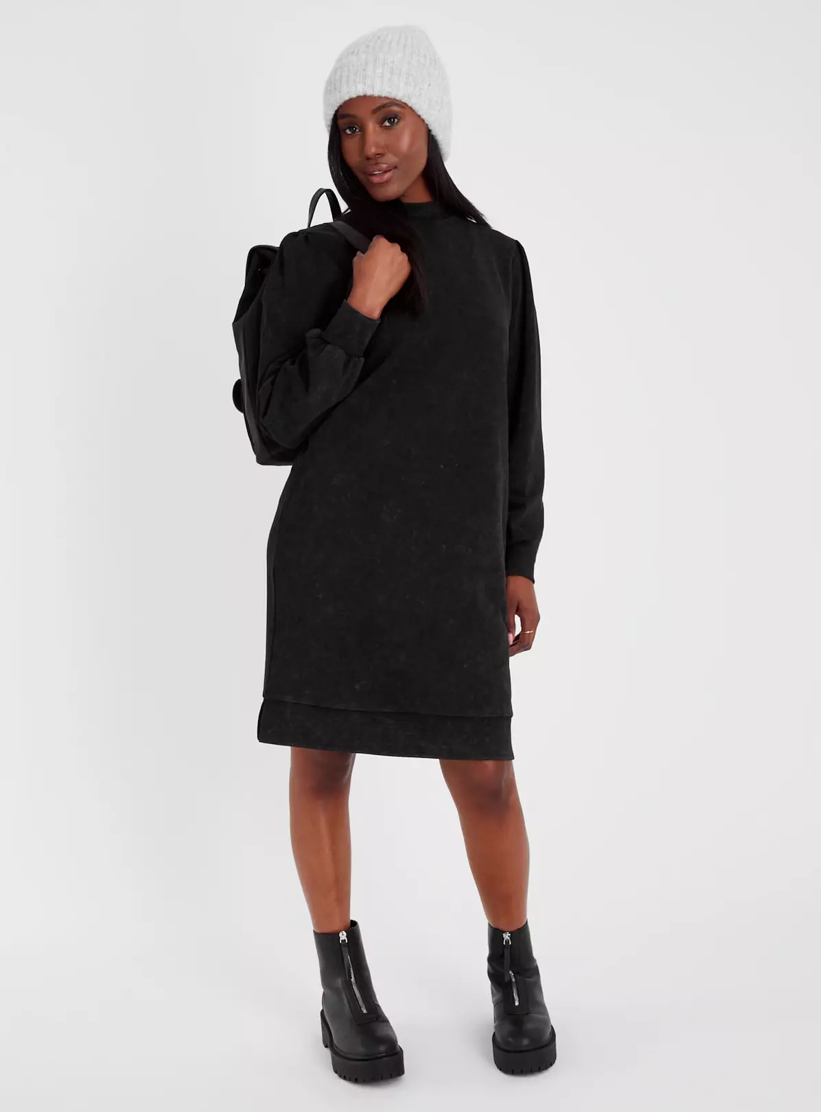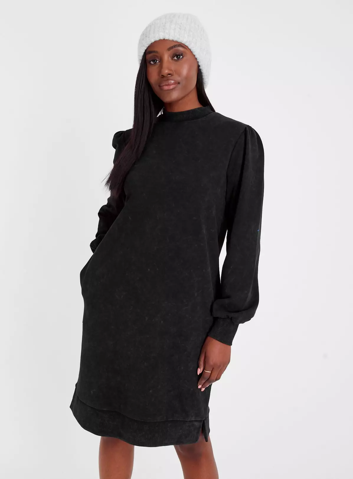 When you’re looking for something a little more comfy, but don’t fancy joggers, our washed black sweat dress is a great option. Cotton-rich, it comes in an on-trend puff sleeve style with round neckline.