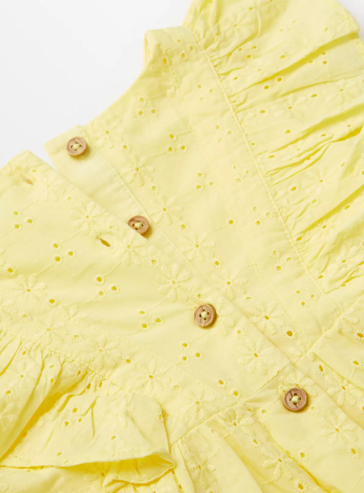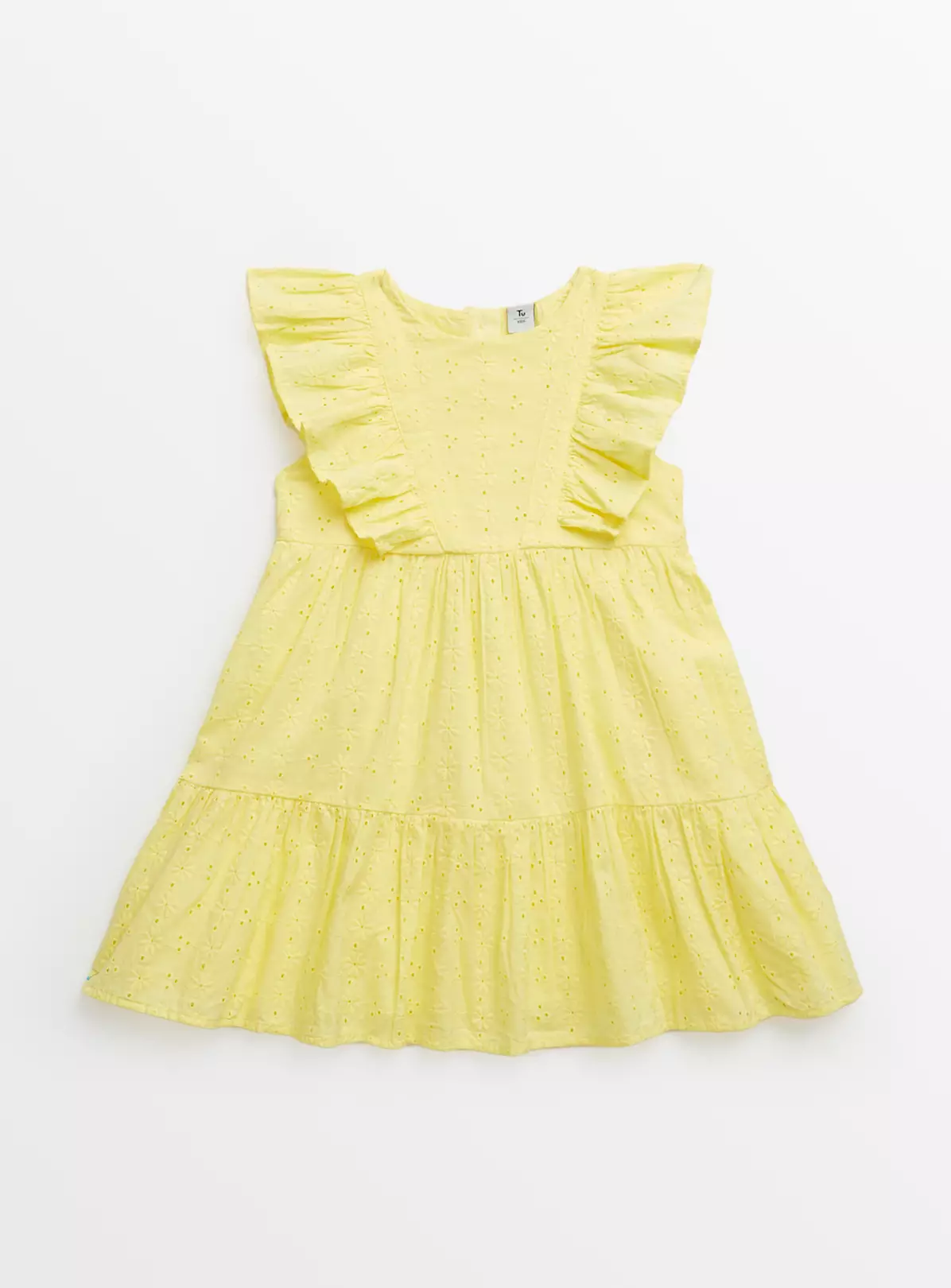 In a gorgeous bright yellow shade, our floral broderie dress comes in a sleeveless design and features pretty frill details on the shoulders. Perfect for their spring wardrobe!